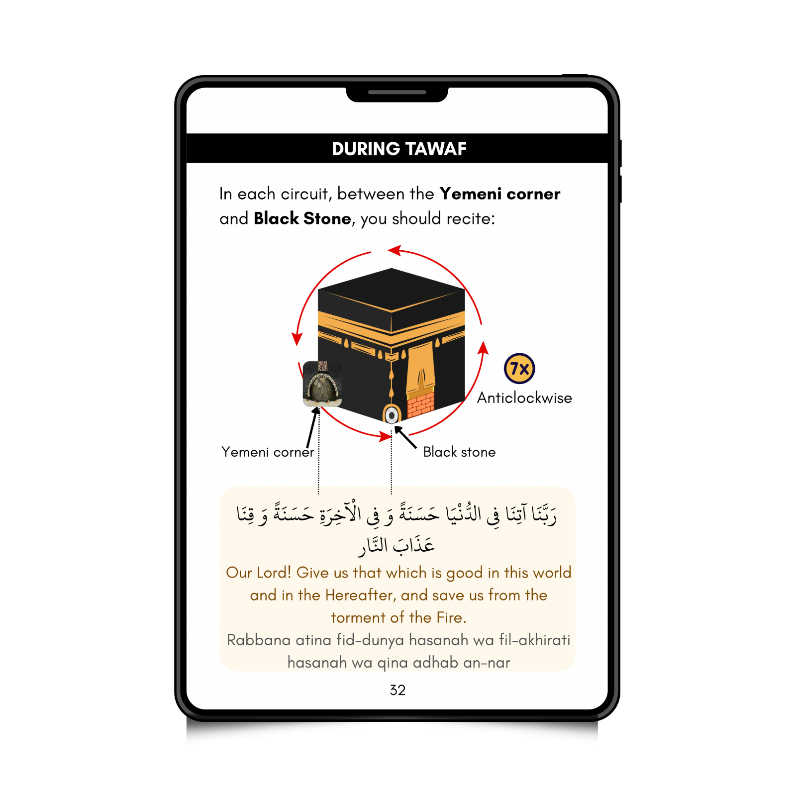- Step-by-step layout – From pre-Ihram preparations to shaving, all in order.